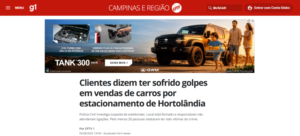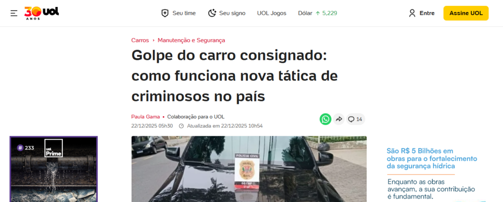 • Prejuízo em SP: Em 2024, golpes em revendas de autos em SP causaram um prejuízo de R$ 611 milhões, com a capital liderando as ocorrências (43,8%).